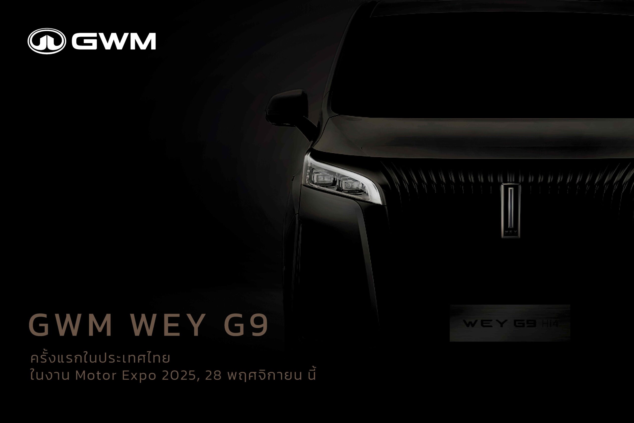 เตรียมพบกับ GWM WEY G9 ครั้งแรกในประเทศไทย GWM (Thailand) พร้อมสร้างปรากฏการณ์ใหม่ให้กับตลาดรถยนต์ลักชัวรี่พลังงานใหม่ เตรียมเปิดตัวแบรนด์ GWM WEY อย่างเป็นทางการในไทย และเผยโฉม GWMWEY G9 เป็นครั้งแรก ในงาน Motor Expo 2025 วันที่ 28 พฤศจิกายน 2568 นี้