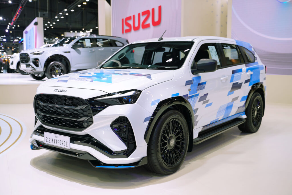 MU-X “THE NEXT PEAK” รุ่น Ultimate 2.2 Ddi MAXFORCE สีดำบาวาเรียนไมก้า (Bavarian Black Mica) มาพร้อมคอนเซ็ปต์รถครอบครัวเพื่อการท่องเที่ยว พร้อมความปลอดภัยครบครันด้วย ใหม่! กล้องรอบคัน 360° Surround View Camera พร้อมมุมมองใต้ท้องรถเพื่อความแม่นยำในการขับขี่ เพิ่มความอเนกประสงค์ในการเดินทางด้วยชุดคานบนหลังคา THULE รุ่น WINGBAR EDGE เพิ่มพื้นที่ในการจัดเก็บสัมภาระ ด้วยกล่อง THULE FORCE บนหลังคา เสริมความมั่นใจในการเดินทางด้วยล้อ LENSO รุ่น JAGER DYNA พร้อมยาง BRIDGESTONE DUELER AT002 ขนาด 265/50R20
